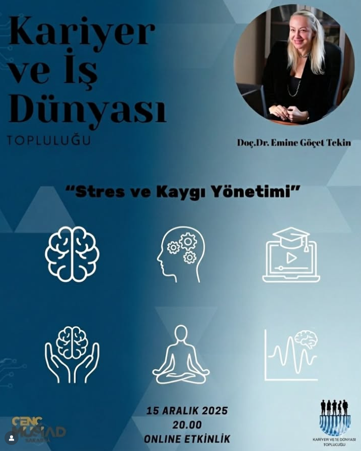 In this context, we are pleased to invite all participants to our online event titled Stress and Anxiety Management, to be held with the participation of Assoc. Prof. Dr. Emine Göçet Tekin.