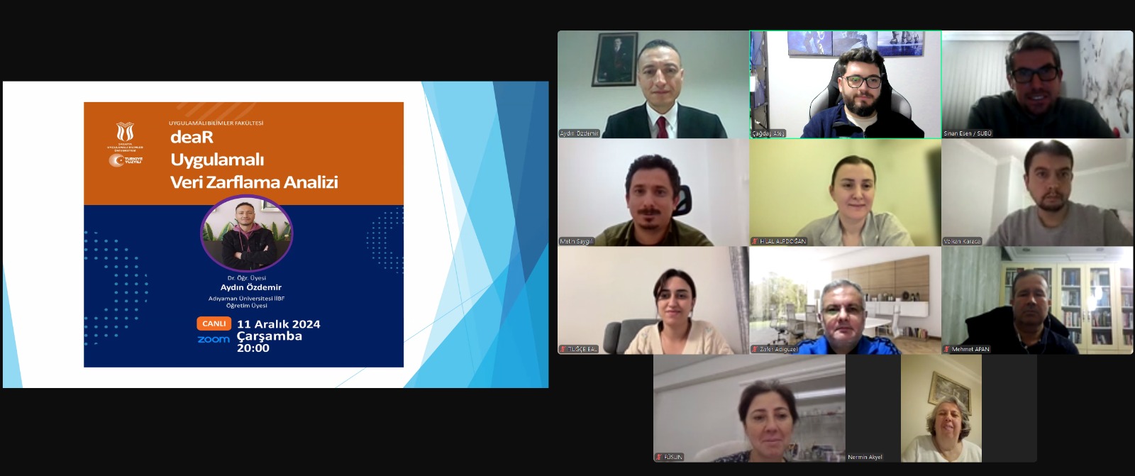 At the event, featuring Dr. Lecturer Aydın Özdemir, a faculty member of the Faculty of Economics and Administrative Sciences at Adıyaman University, the theoretical foundations of Data Envelopment Analysis (DEA) and its practical applications using the R programming language were discussed.