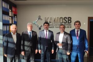 Our University Rector Prof. Dr. Mehmet Sarıbıyık, our Faculty Dean Prof. Dr. Sinan Esen, and the Director of Kaynarca Seyfettin Selim Vocational School, Nafi Filiz, visited the Kaynarca Furniture Specialized Organized Industrial Zone and met with the Chairman of the Board, Güray Çalışkan, along with the board members.