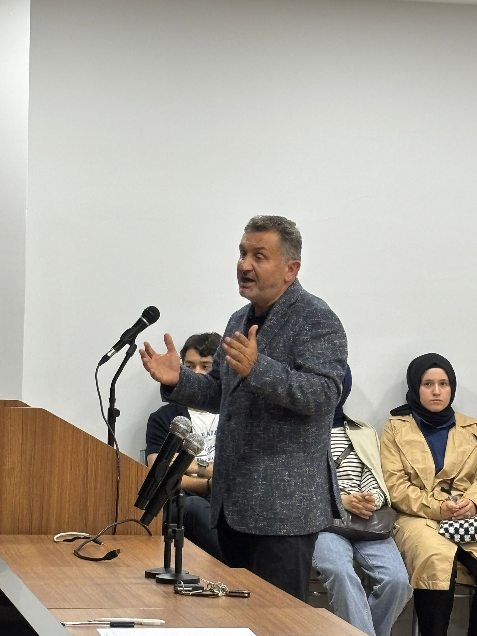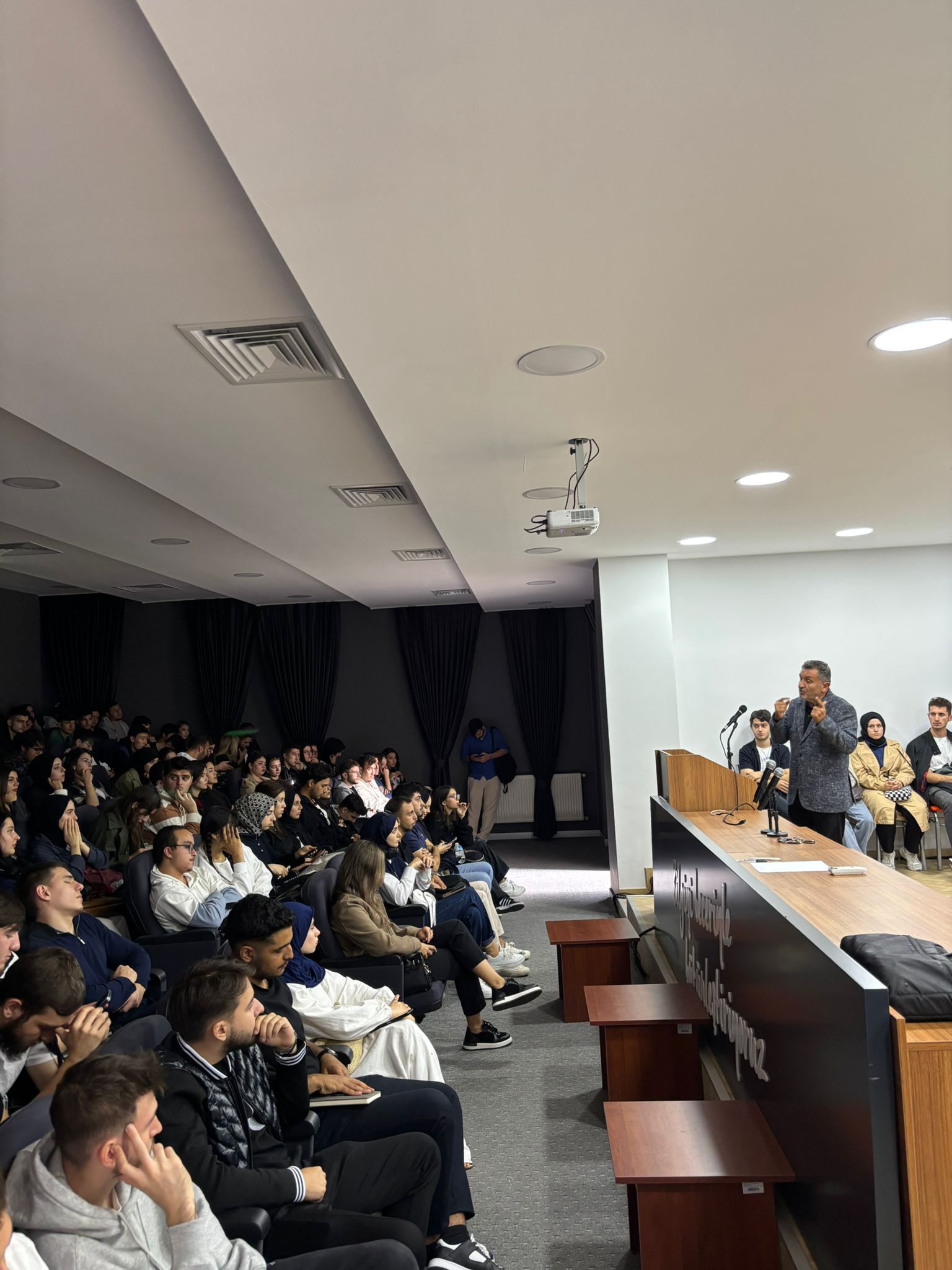 At the industry–student meeting held on Monday, October 14 at 14:00 in the Faculty of Applied Sciences Conference Hall, one of the prominent figures of the business world, Hamit Bektaş, Chairman of the Board of Tektem Makine Inc., met with students.