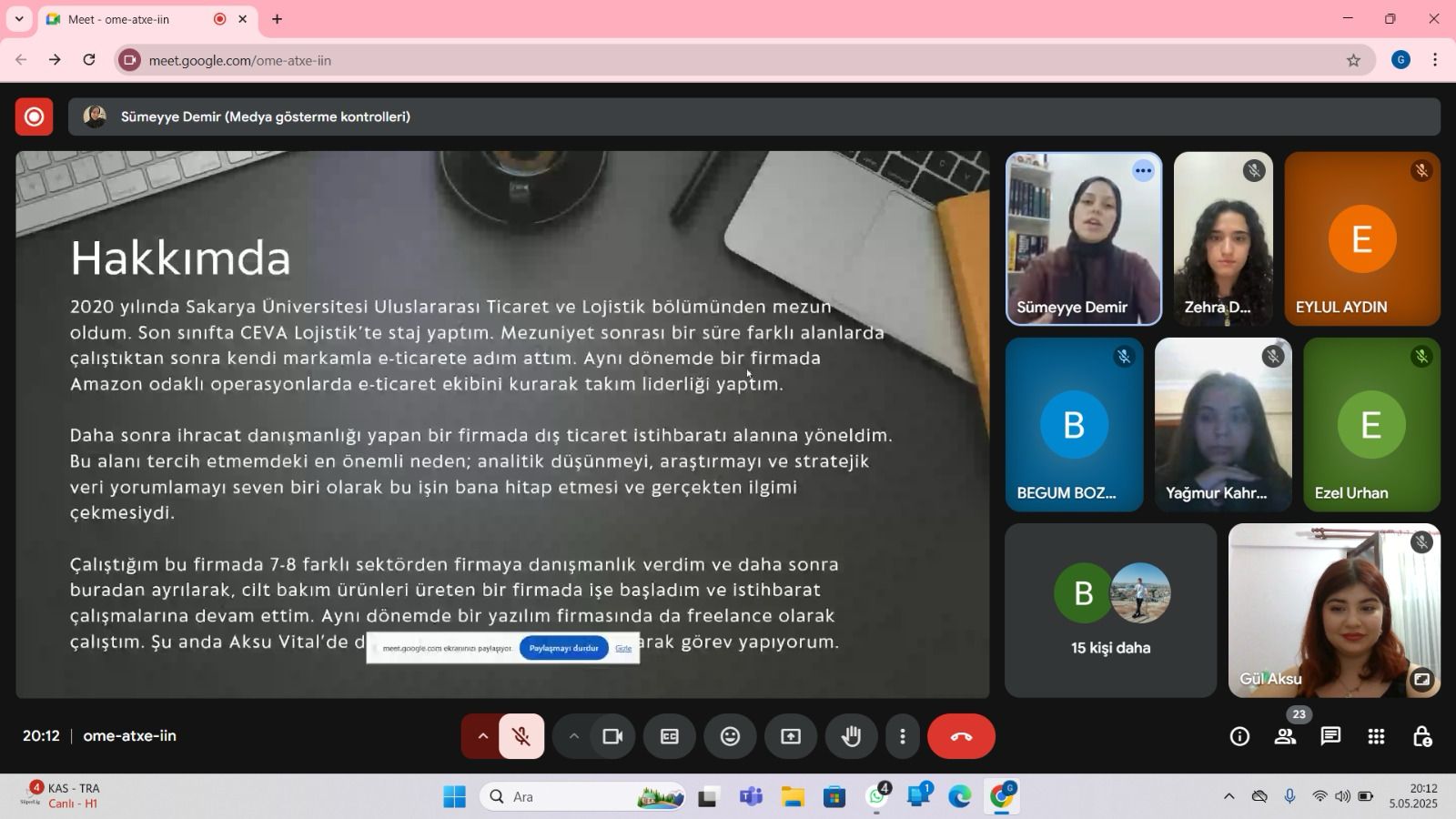 Etkinliğe katılım sağlayan tüm öğrencilere ve katkılarından dolayı Sayın Sümeyye Demir’e teşekkür ederiz.