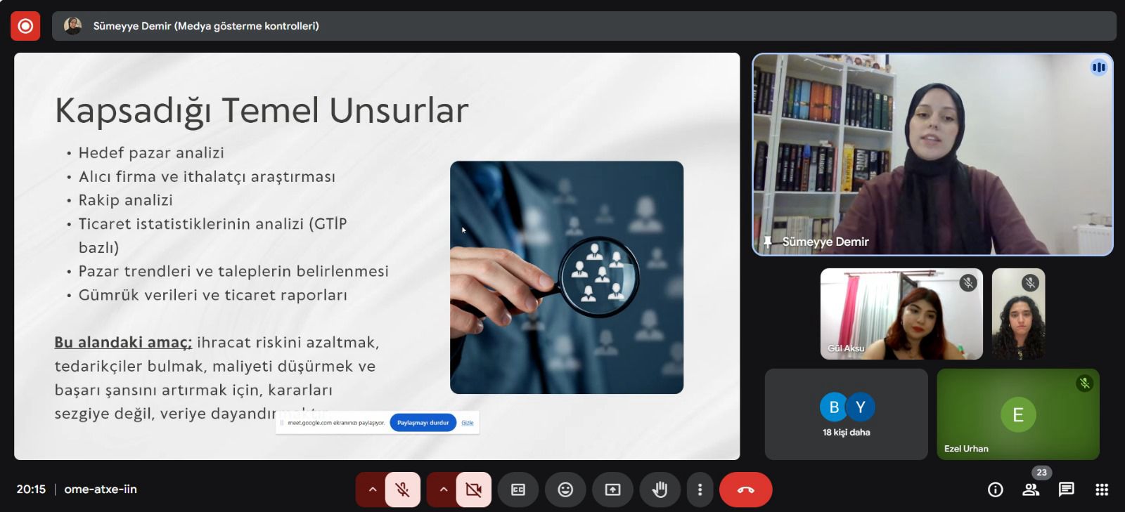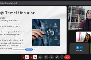 Etkinlikte, Dış Ticaret İstihbaratçısı Sümeyye Demir, ihracatta doğru bilgiye ulaşma yöntemleri, pazar ve rakip analizinde izlenecek stratejik adımlar ile istihbaratın dış ticaret süreçlerindeki önemi üzerine değerli paylaşımlarda bulundu.