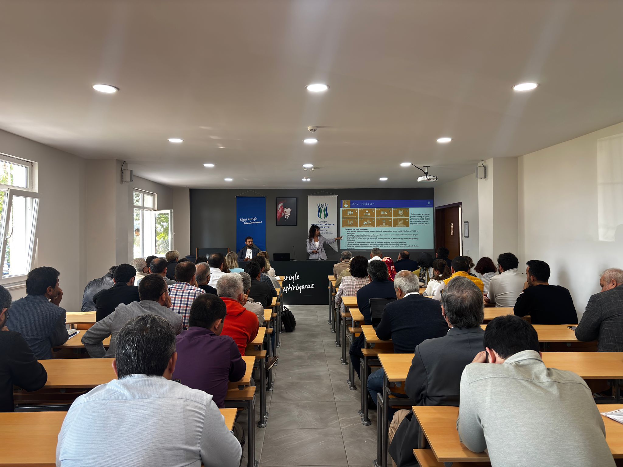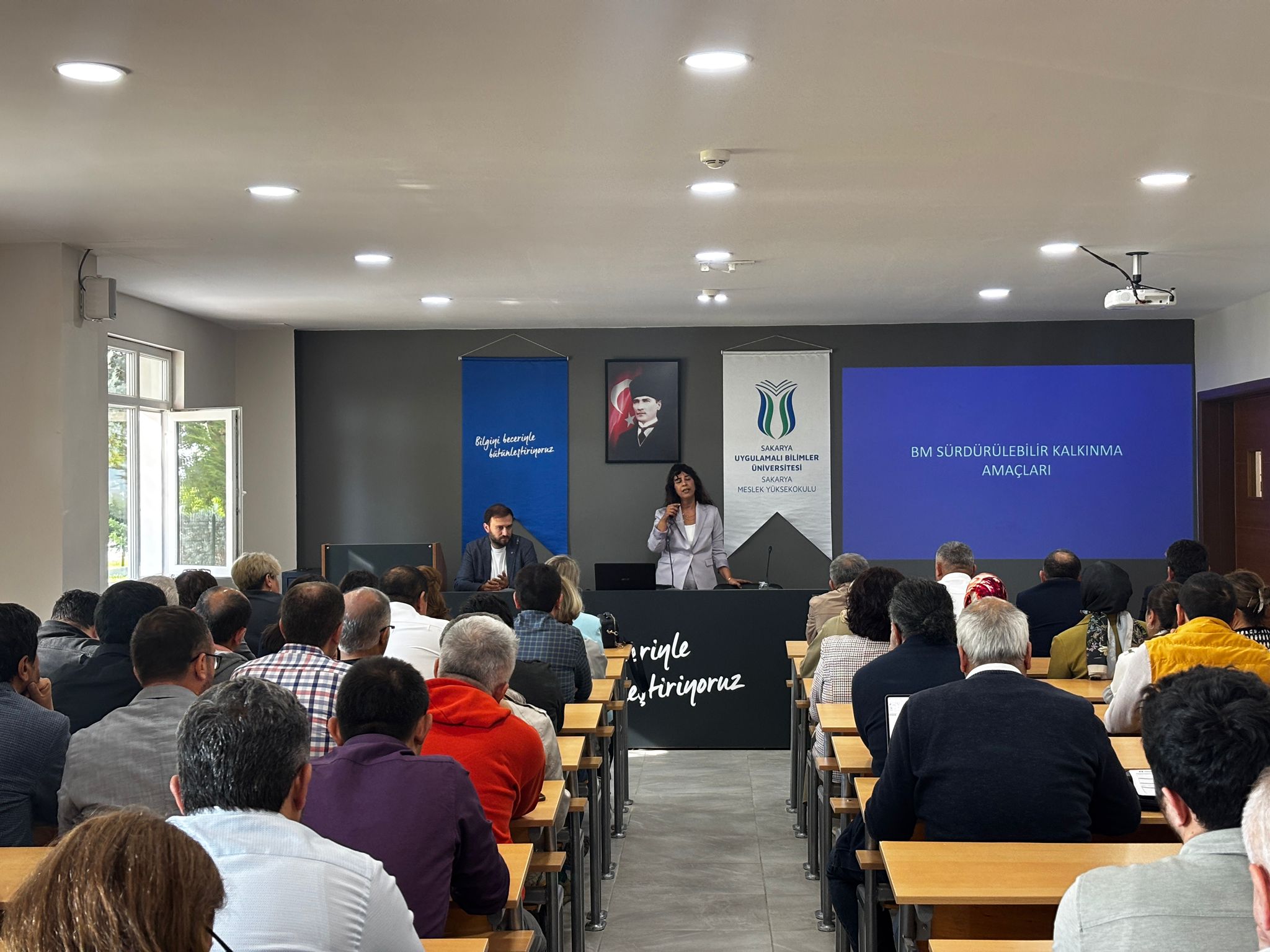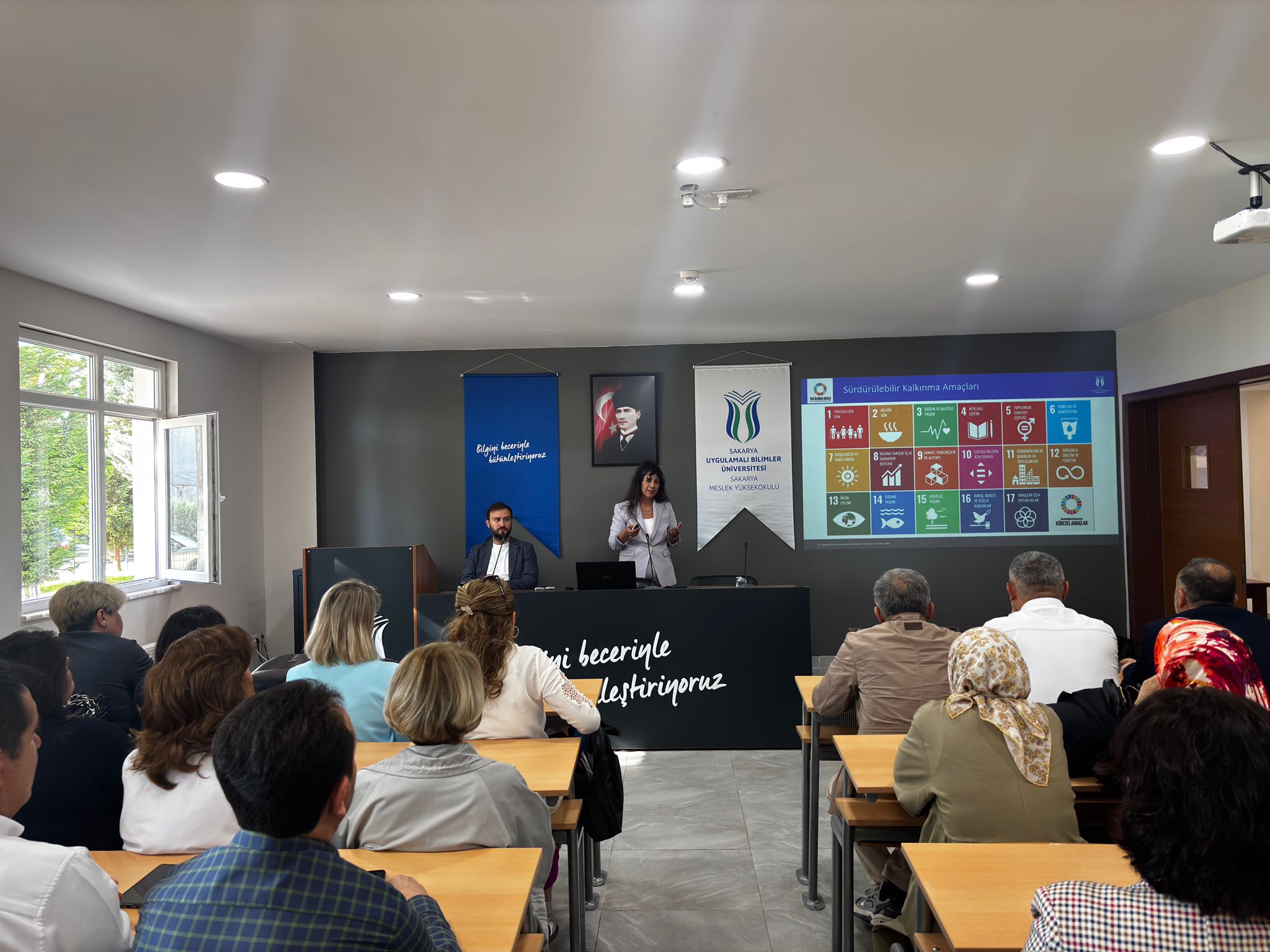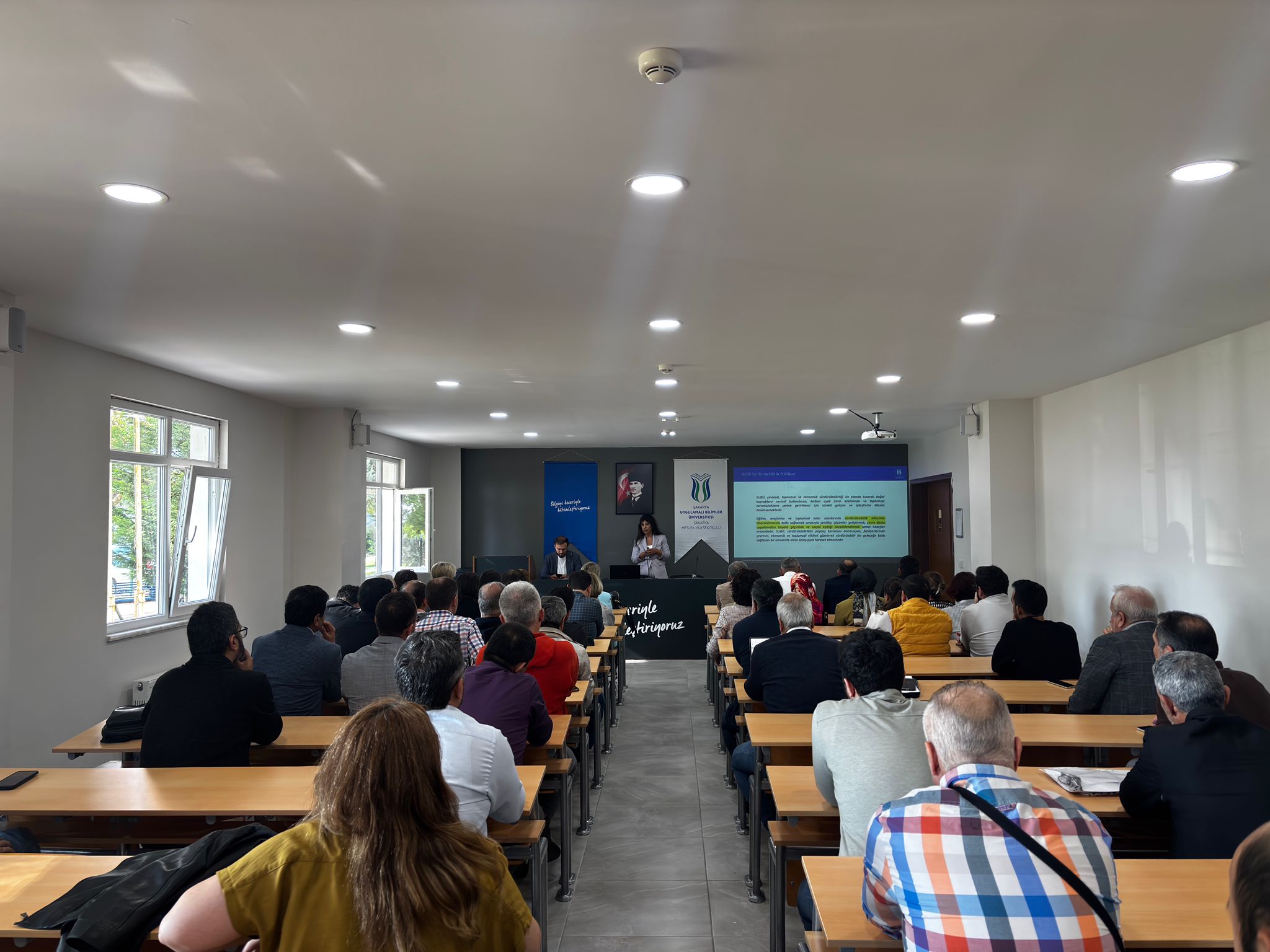 6 Ekim Pazartesi günü Uygulamalı Bilimler Fakültesi ve Sakarya MYO Yerleşkesinde düzenlenen eğitimde, sürdürülebilirlik kavramının üniversiteler açısından önemi ve üniversitemizin dünya üniversiteleri sıralamasındaki yeri ele alındı. Katılımcılar, sürdürülebilirlik kriterleri doğrultusunda üniversitelerin değerlendirme süreçleri hakkında güncel bilgiler edinme fırsatı buldu.