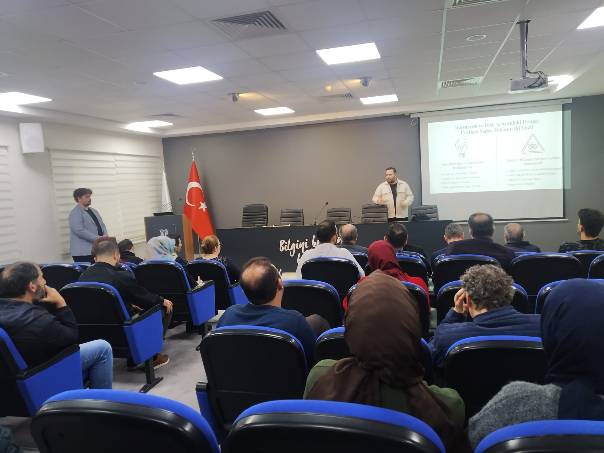 Fakültemiz Öğretim Üyesi Dr. Öğr. Üyesi Onur CANPOLAT, YAZEM VE TTO işbirliği ile düzenlenen "TÜBİTAK, AB ve KOSGEB Projelerinde Üretken Yapay Zeka Kullanımı" başlıklı seminerde, katılımcılara proje süreçlerinde yapay zekanın etik ve sorumlu kullanımı hakkında bilgilendirmelerde bulundu.